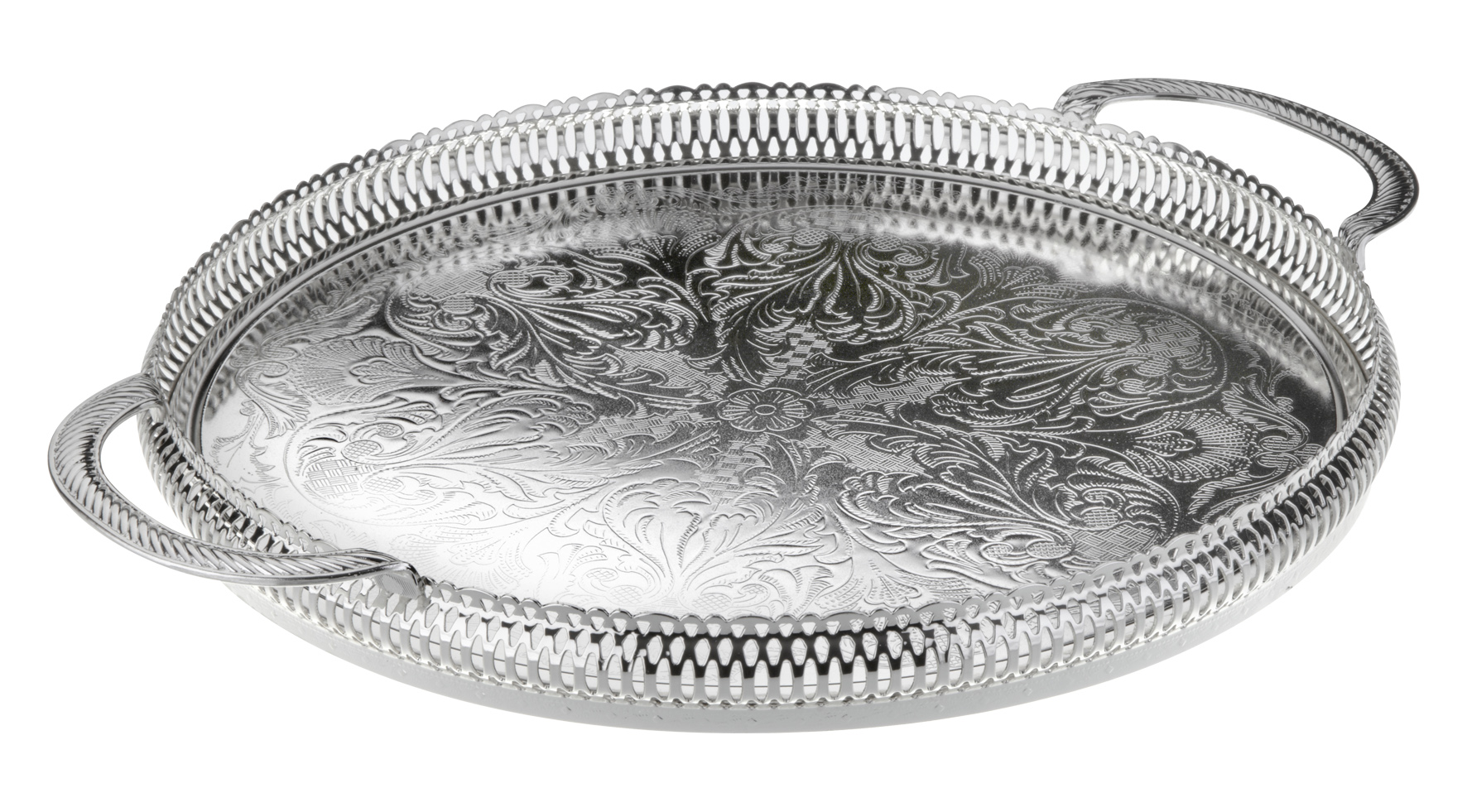 Silver Plated Round Gallery Tray with Handles and Ball Feet