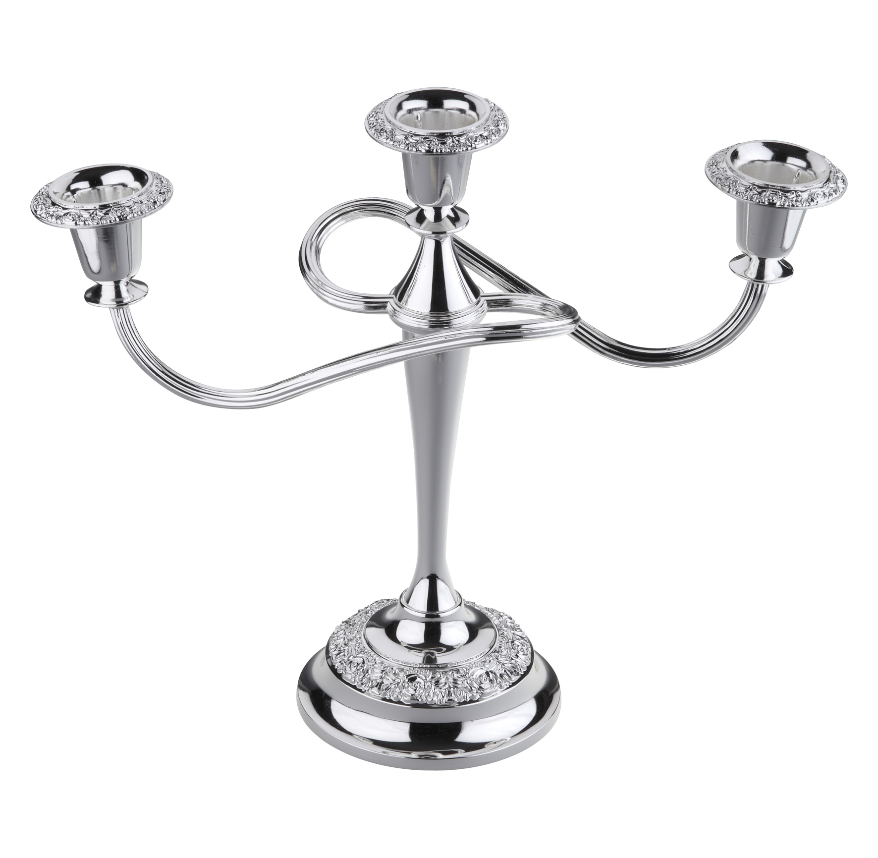 Silver Plated 3 Light Candelabra with “Scroll Style” Arm and “Rose Design” on Sconces and Base