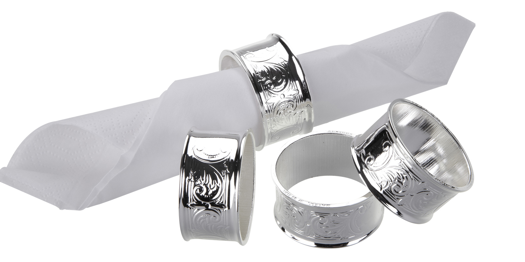 Silver Plated Set of 4 Round Diecast Napkin Rings.