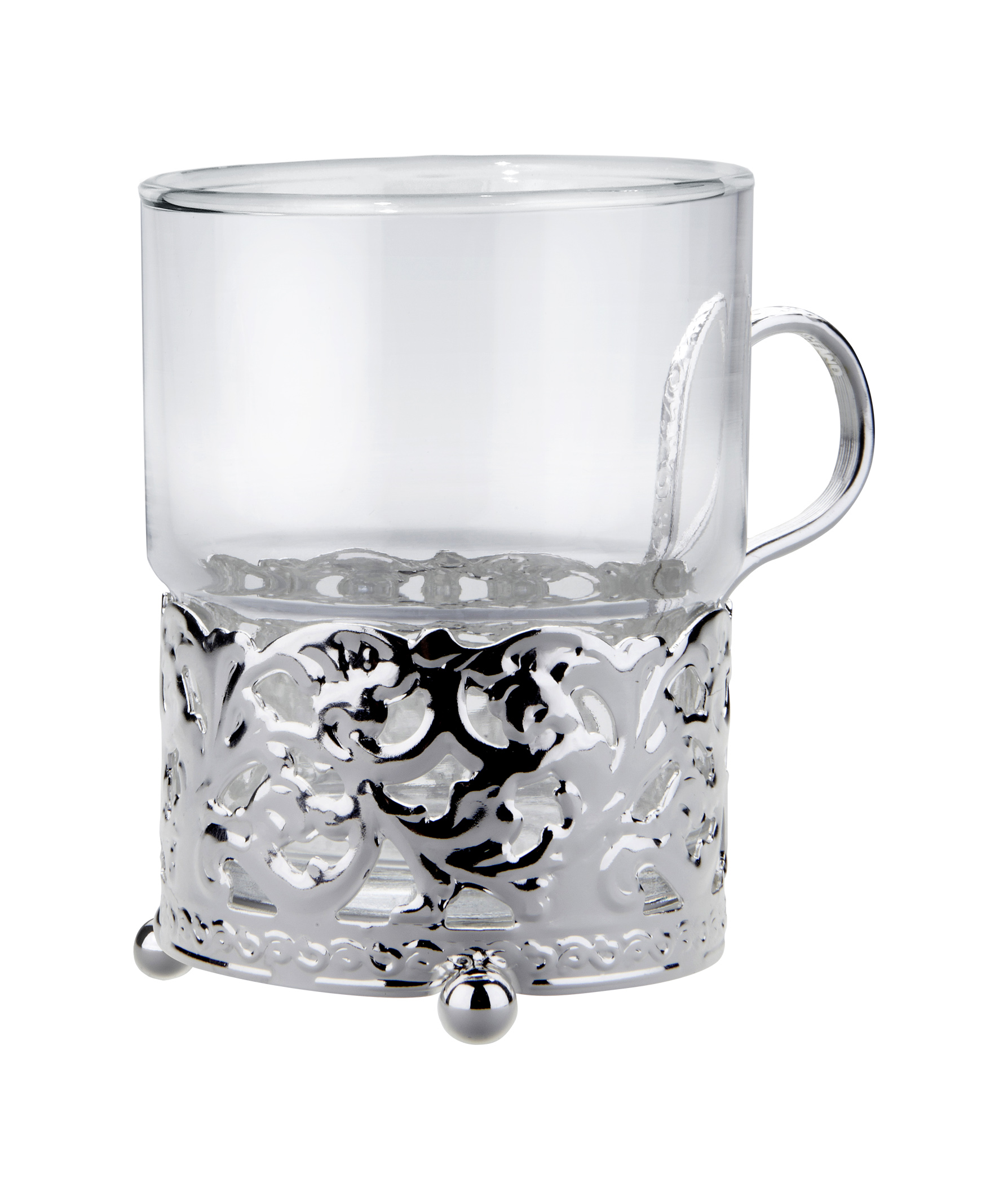 Silver Plated “Royal Gallery” Holder with Handle and Ball Feet, complete with Heat Resistant Tea Glass.