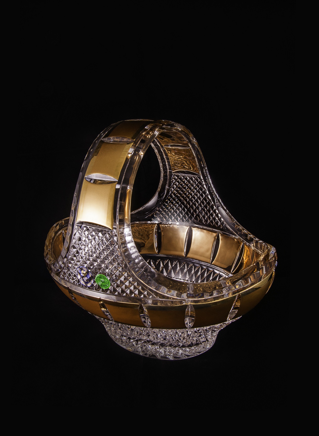Bohemia Czech Crystal Basket, Gold Pattern.