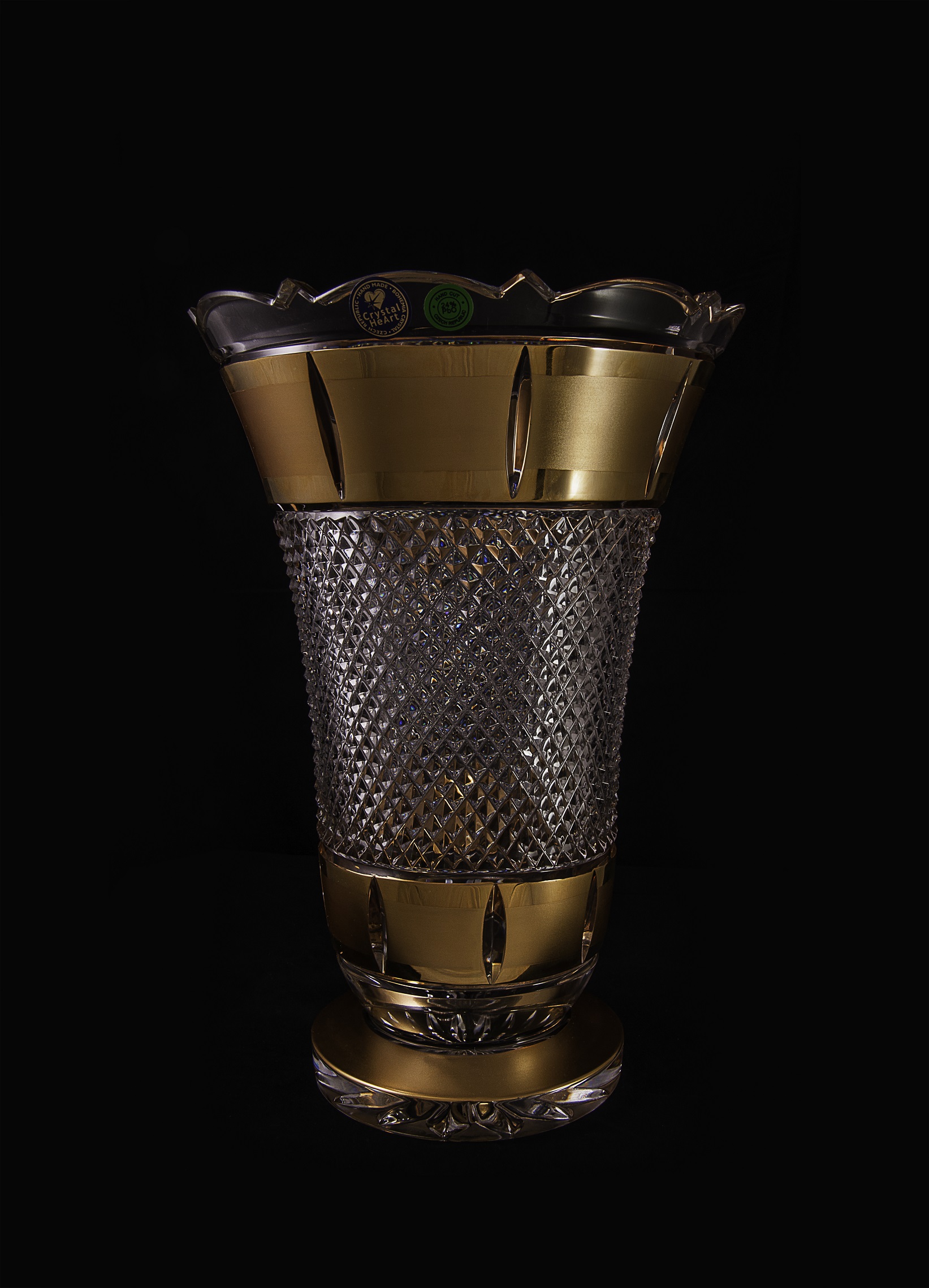 Bohemia Czech Crystal Vase, Gold Pattern.