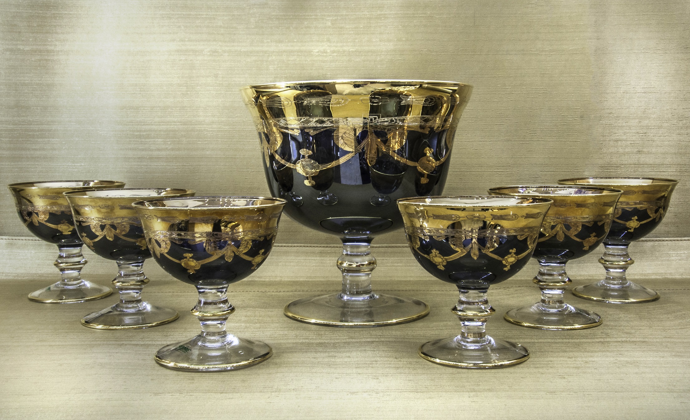 Compote Set 7 Pcs, Crystal, Black Color with gold.