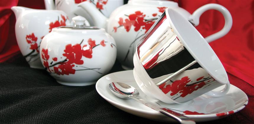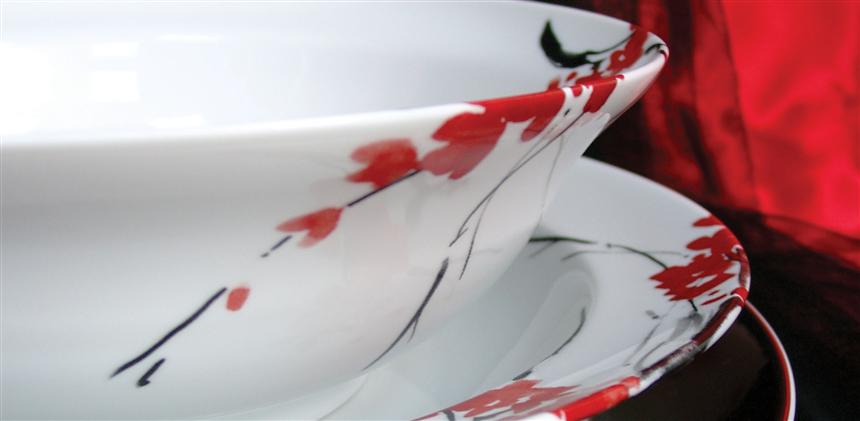 With an almost poetic dimension, the Mirror collection is inspired by the intimate vision of being, in its purest and most moving state, combining floral notes in bright red with the strong reflection of platinum, in an unlikely mix that attracts for not being fully understood. The wide stripes of shiny platinum strategically applied to some pieces and the red flowers, which combine and reflect on platinum, reveal a completely new concept in the way of exploring porcelain design. This design, by Elisa Belleri, is only available in the domestic range.