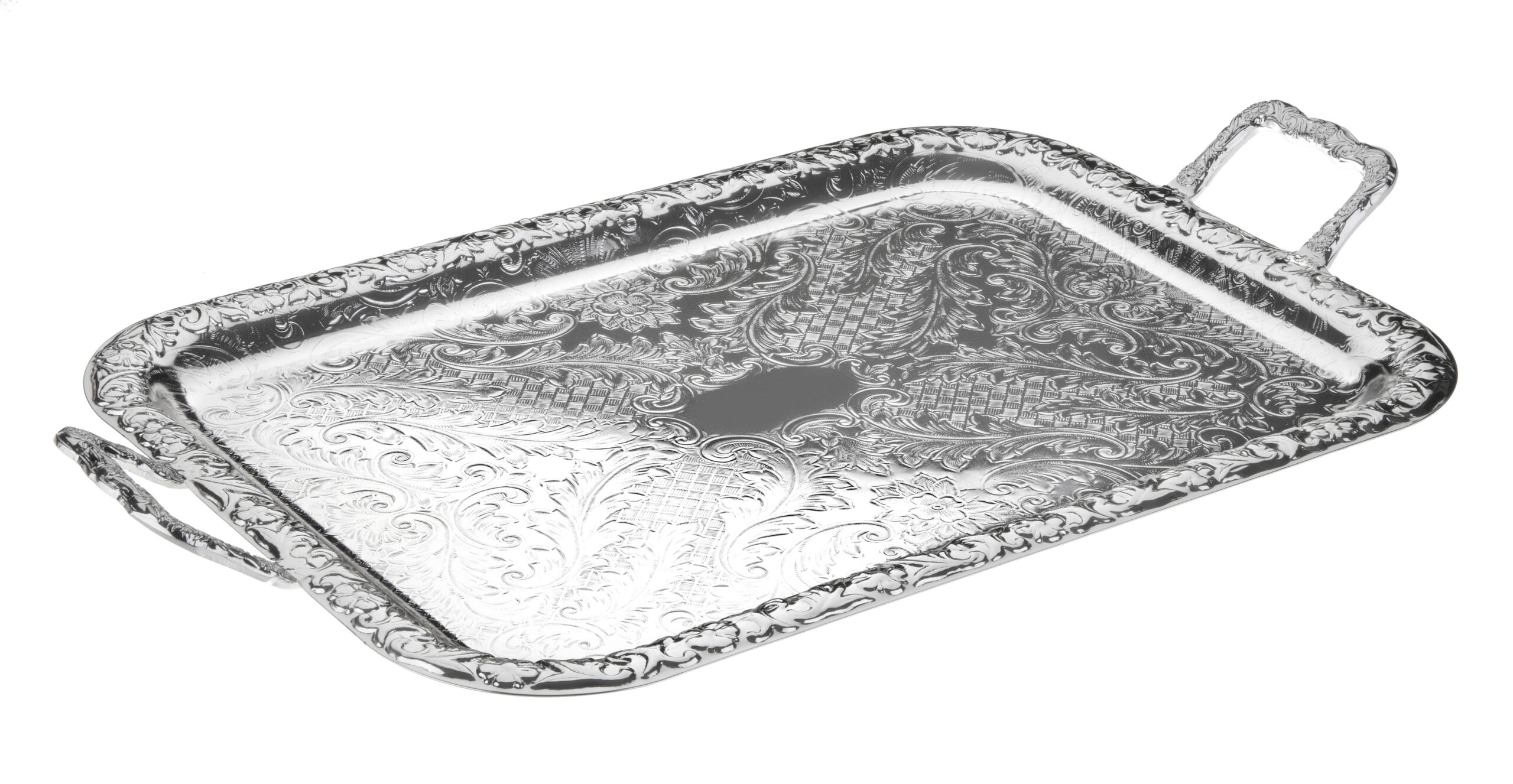 Silver Plated Small Floral Edged Oblong Tray with Handles