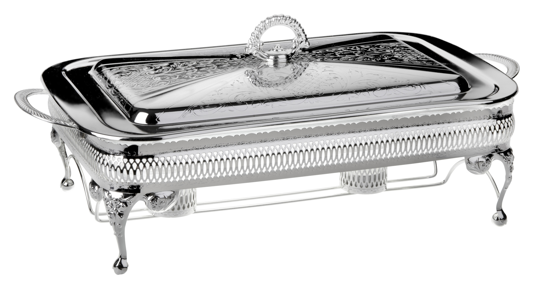 Silver Plated Gallery Frame with Handles, Legs and integral Candle Holders. Large Oblong “Oven to Tableware” Glass Casserole, complete with Silver Plated Decorative Lid with Diecast Handle.