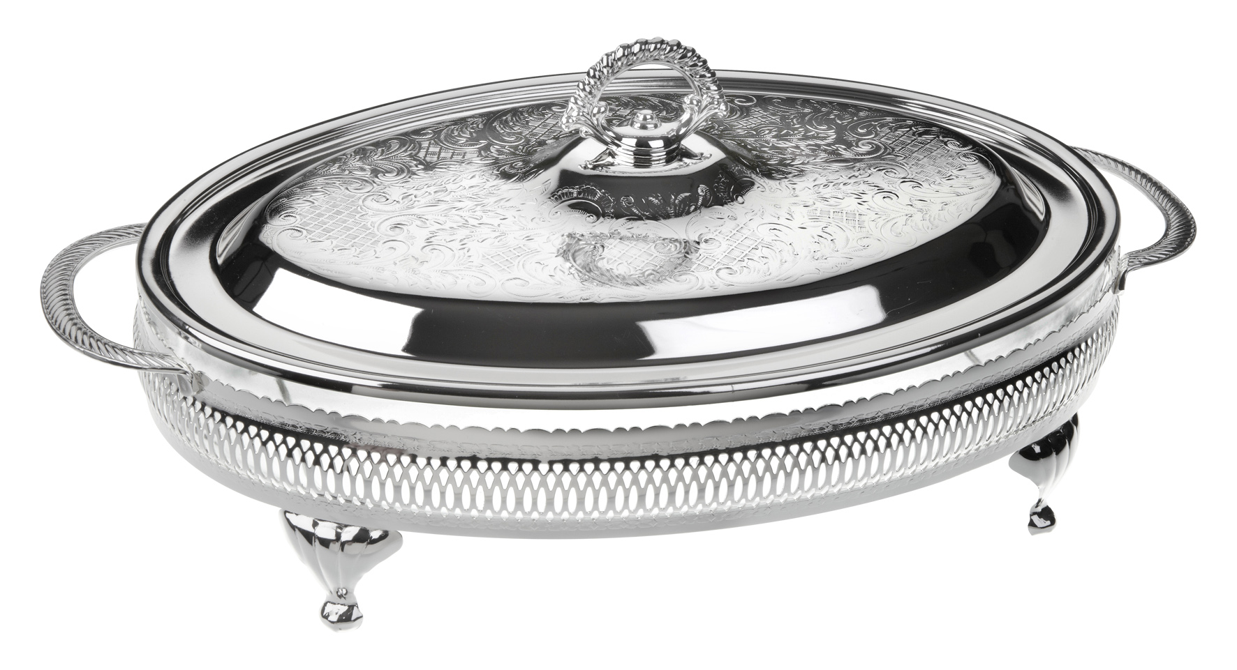 Silver Plated Gallery Frame with Handles and Legs. Large Oval “Oven to Tableware” Glass Casserole, complete with Silver Plated Decorative Lid with Diecast Handle.