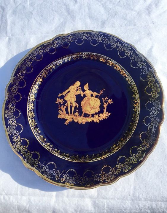 Limoges Blue Gold Painted Trinket Large Dish.