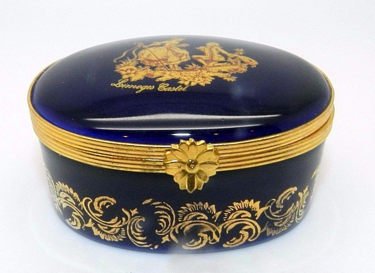 VINTAGE LIMOGES PORCELAIN Oval Trinket Box HINGED