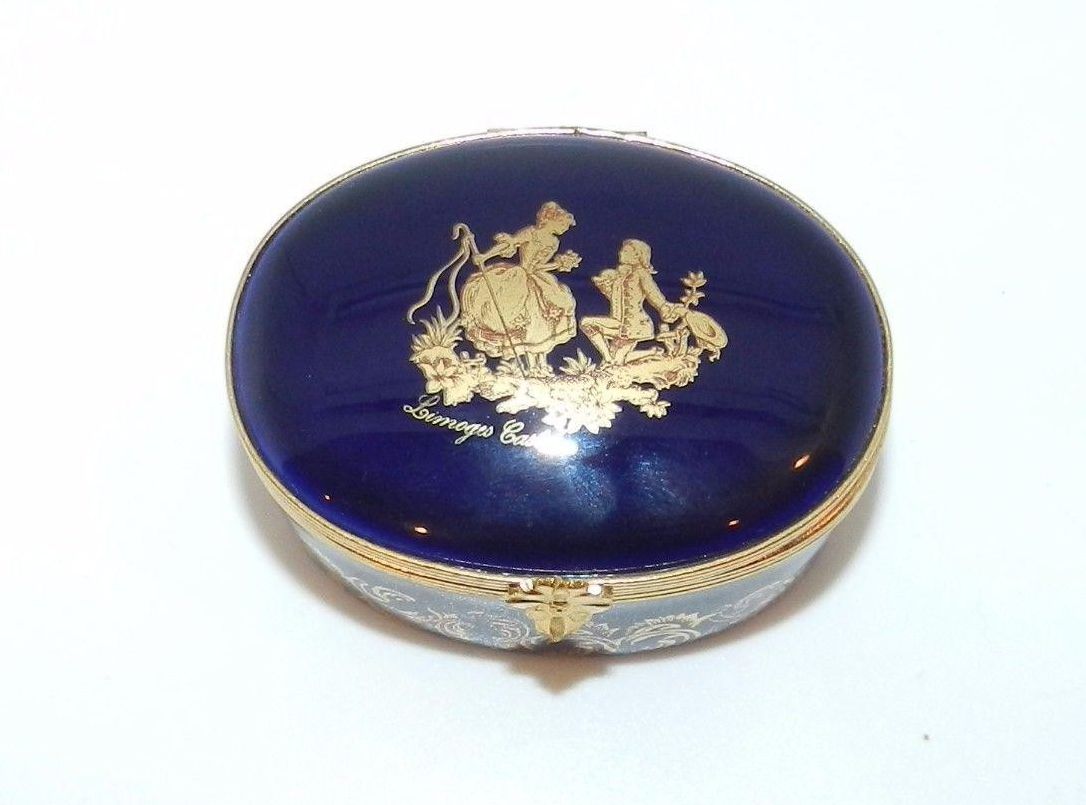 VINTAGE LIMOGES PORCELAIN Oval Trinket Box HINGED.