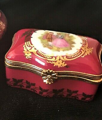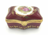 VINTAGE LIMOGES PORCELAIN oblong trinket box by Castel in magenta red.