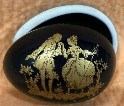 Limoges Cobalt Blue Egg-shaped Trinket Dish Gold Floral & Trim