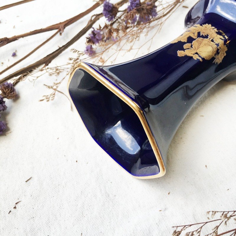 Limoges Vintage Blue with Gold Romeo and Juliet Hexagonal Vase.
