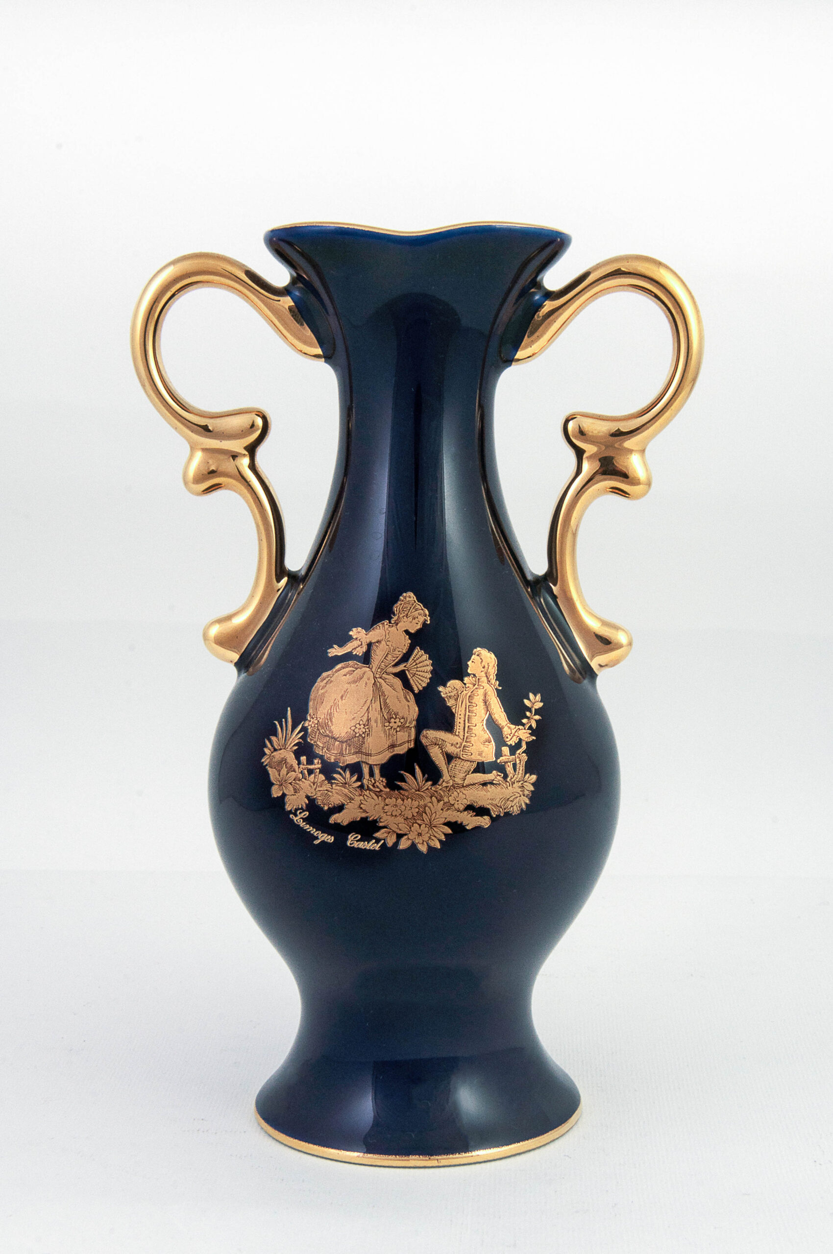 Limoges Vintage Blue Gold Romeo and Juliet VASE.