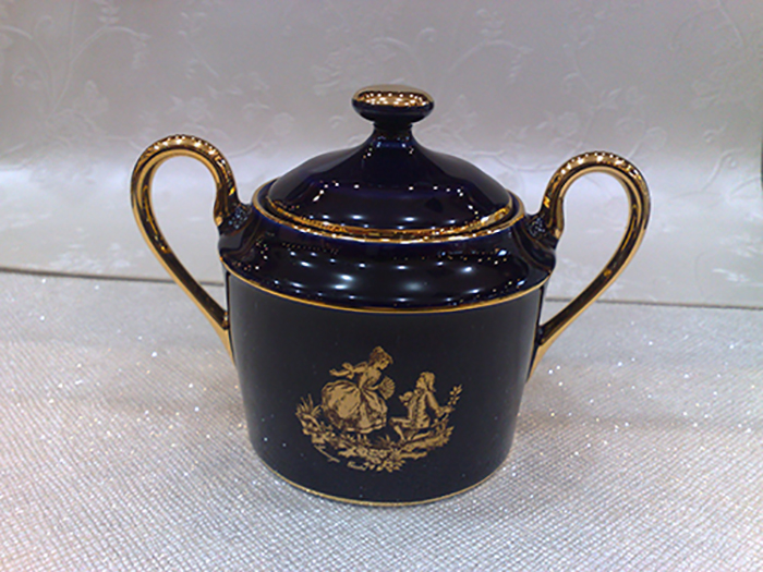 Limoges Blue Sugar Bowl with Gold.
