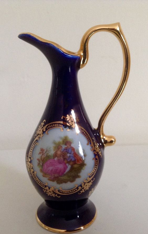 Limoges Vintage Porcelain Pitcher. Cobalt Blue. Courting Couple Scene.