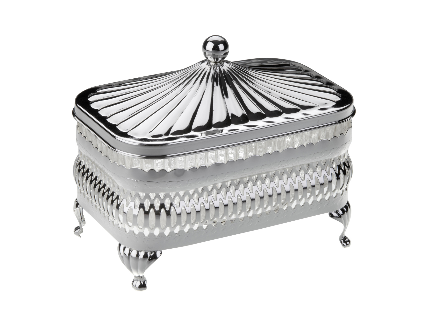 Silver Plated Gallery Frame with Legs and Decorative Lid, with an Oblong Patterned Glass Dish