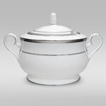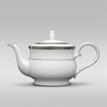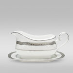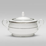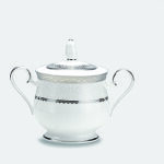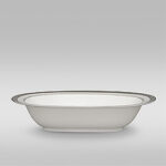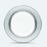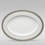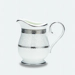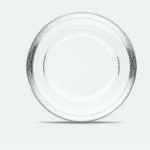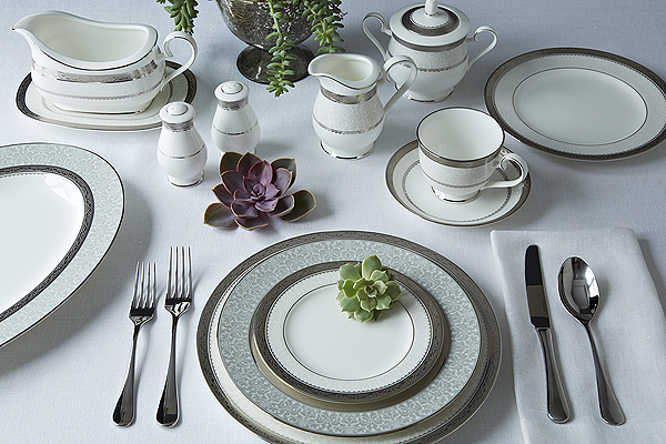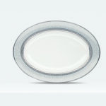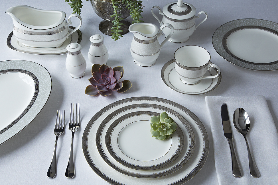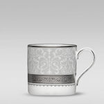 Odessa Platinum features a wide, etched platinum band, coupled with an inner band of delicate white florals over a whisper of dove gray.