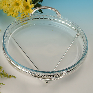 Silver Plated Gallery Frame, with Handles and Ball Feet. Round Glass Flan/Quiche Dish.