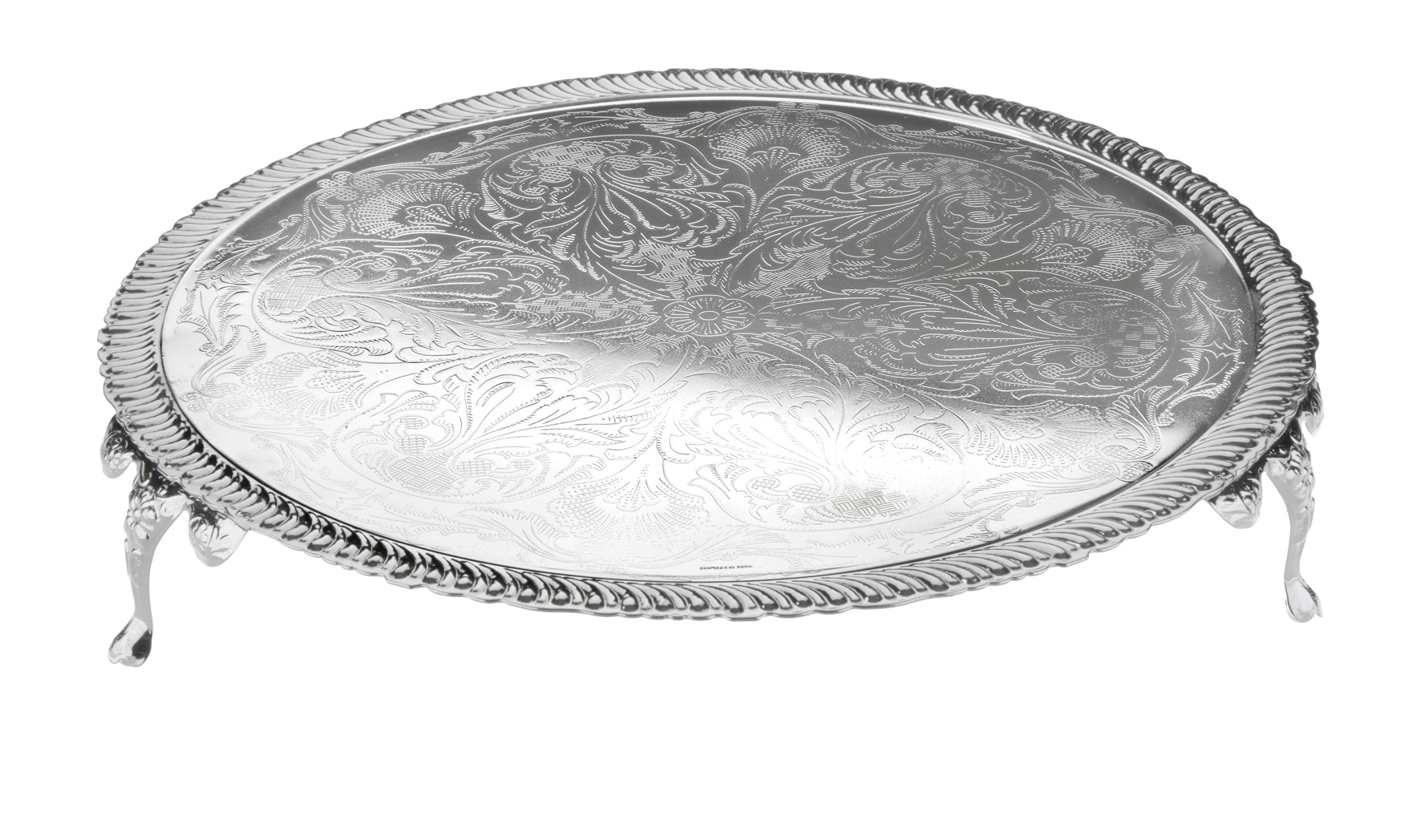 Silver Plated Large Round Cake Tray/Gadroon Edge with Legs