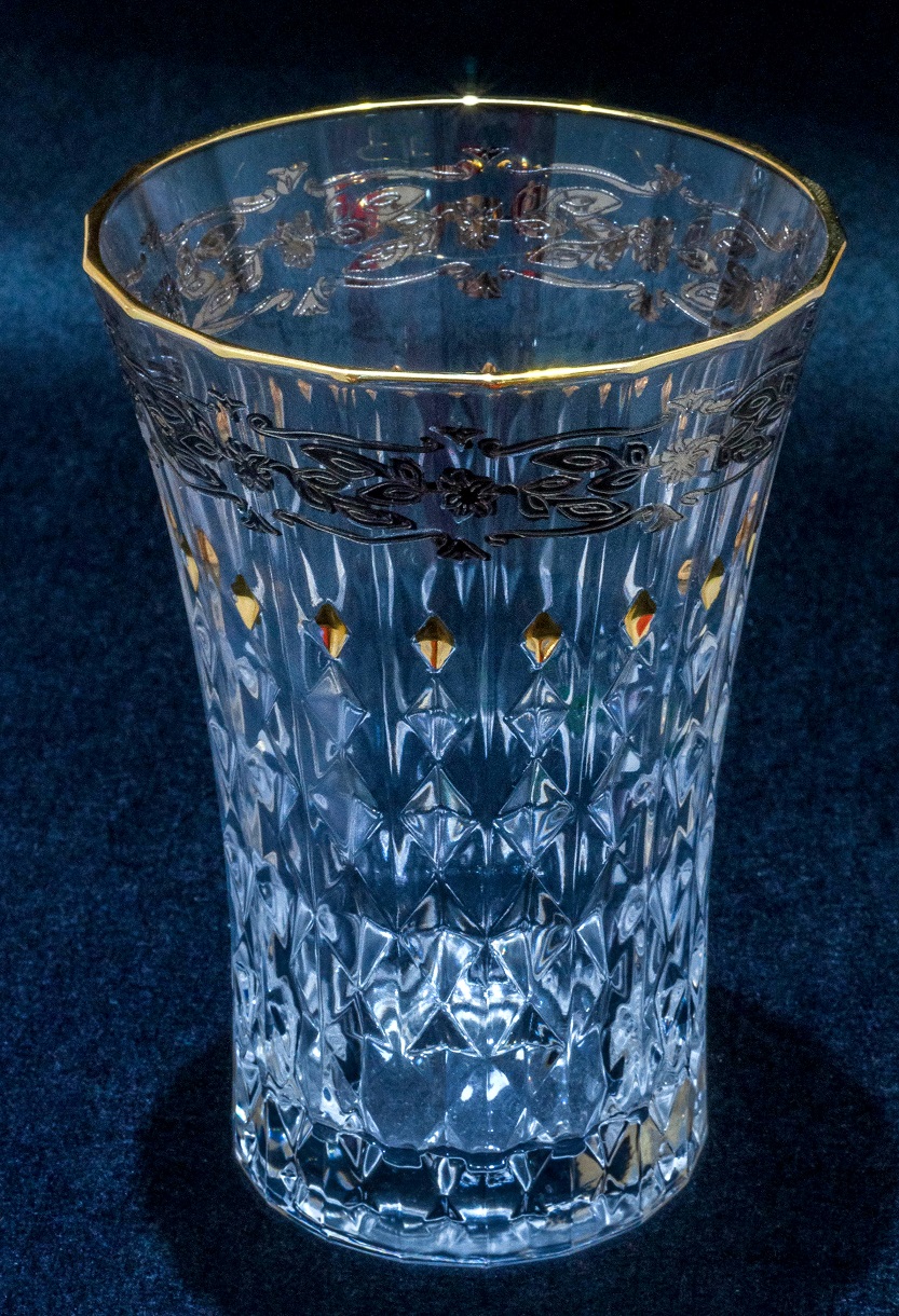 Set of 6 crystal Glasses, Pattern Gold and Platinum.