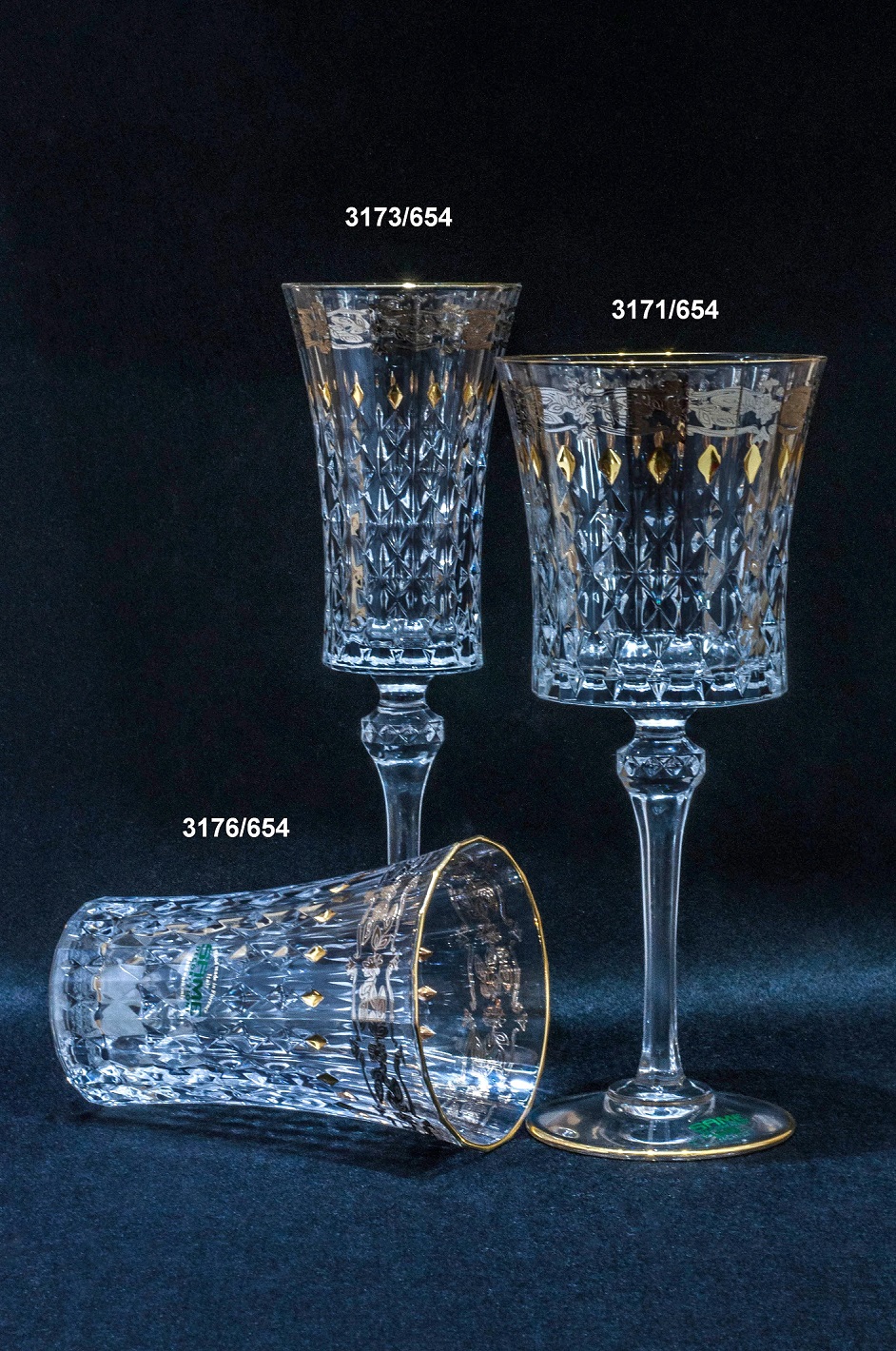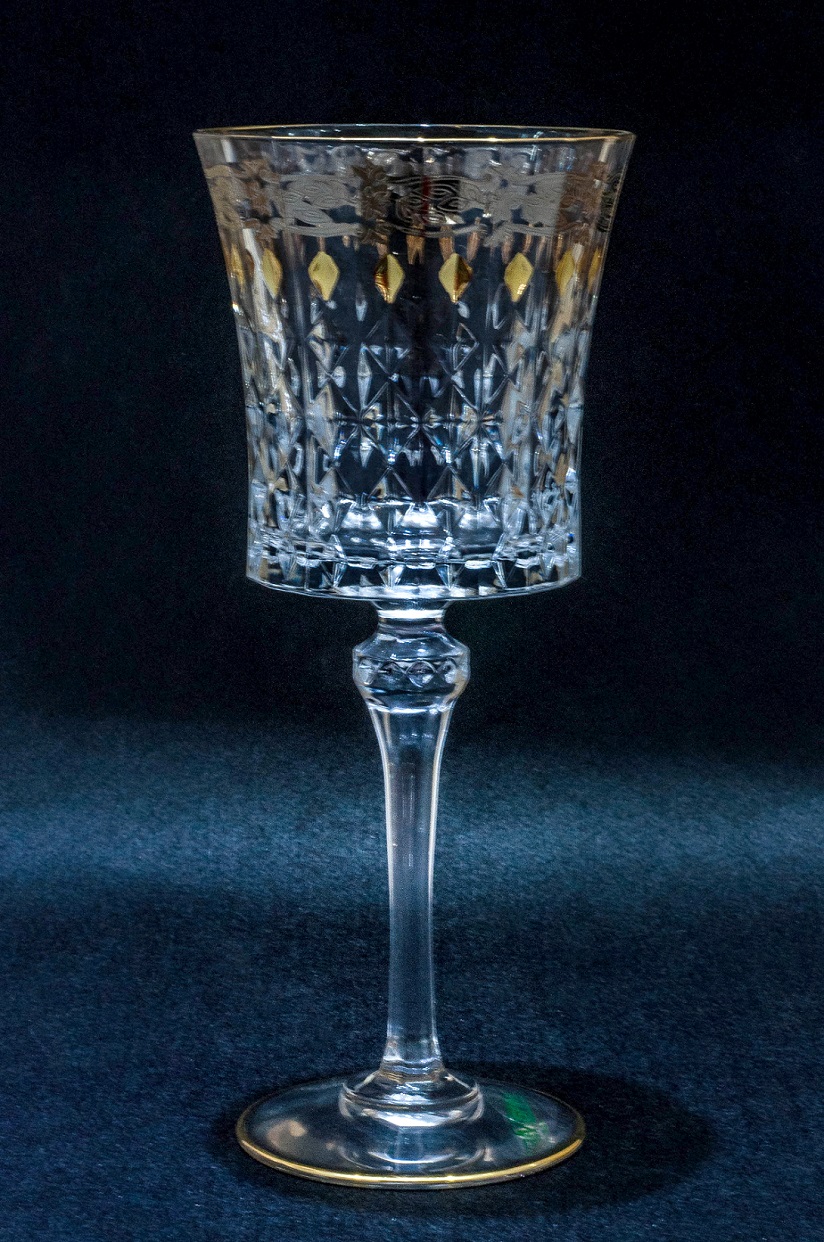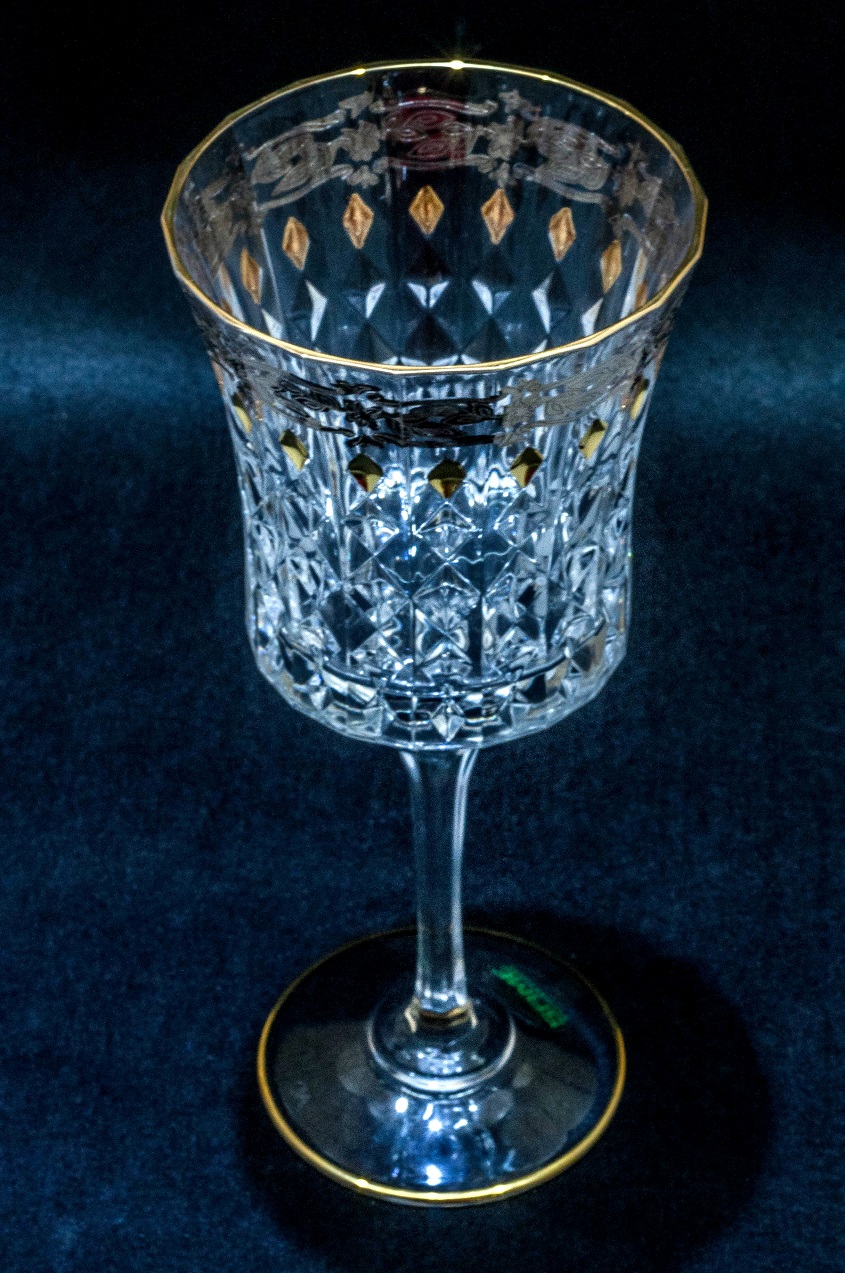 Set of 6 crystal Goblets, Pattern Gold and Platinum.