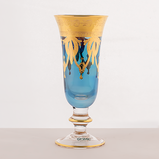 Set of 6 Flute Goblets – Crystal, Color Blue With Gold.