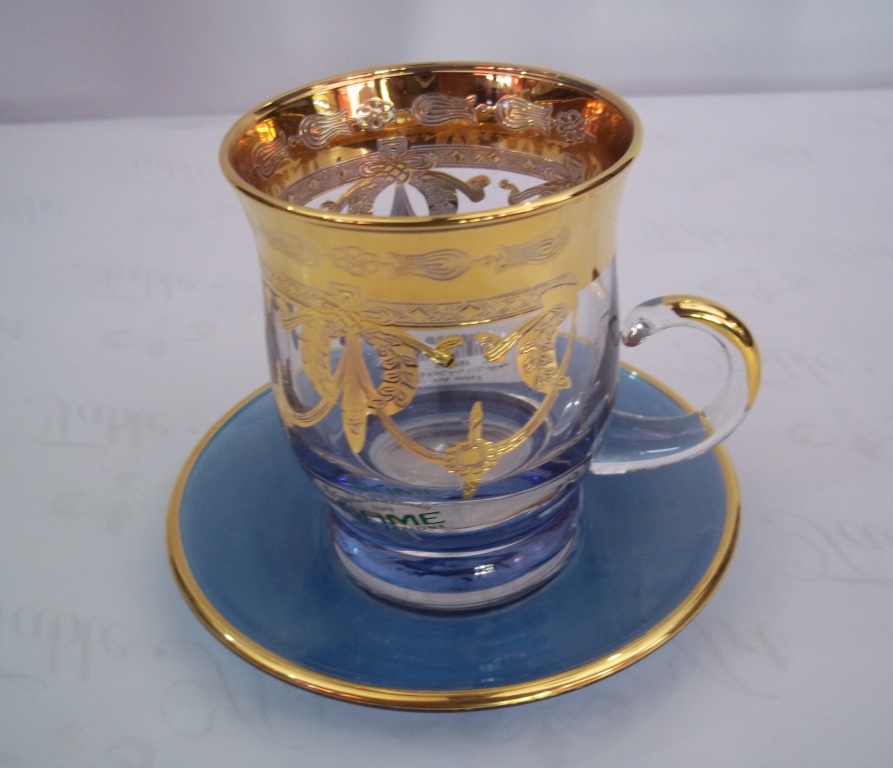 Set of 6 Teacups – Crystal, Color Blue With Gold.