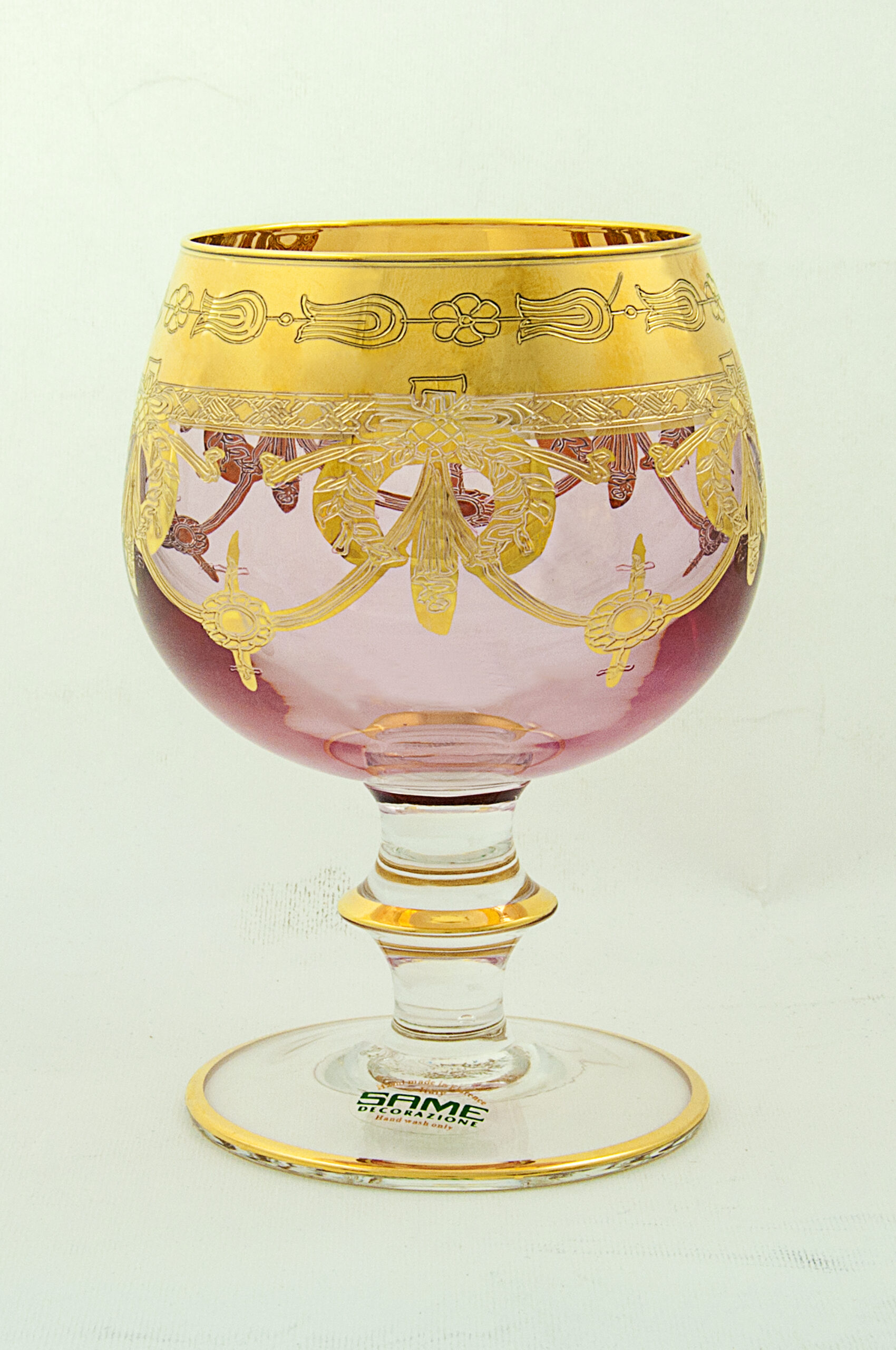 set of 6 Goblets, Crystal, Pink Color with Gold.