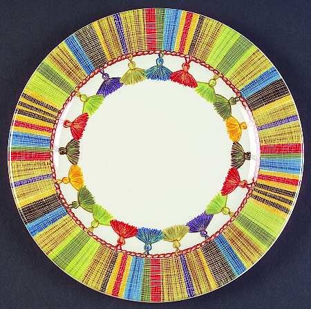 The design that features stripes and tassels.The design is called “TAFFETAS” by GIEN of FRANCE. It features a gorgeous group of tassels and/or stripes on each piece.