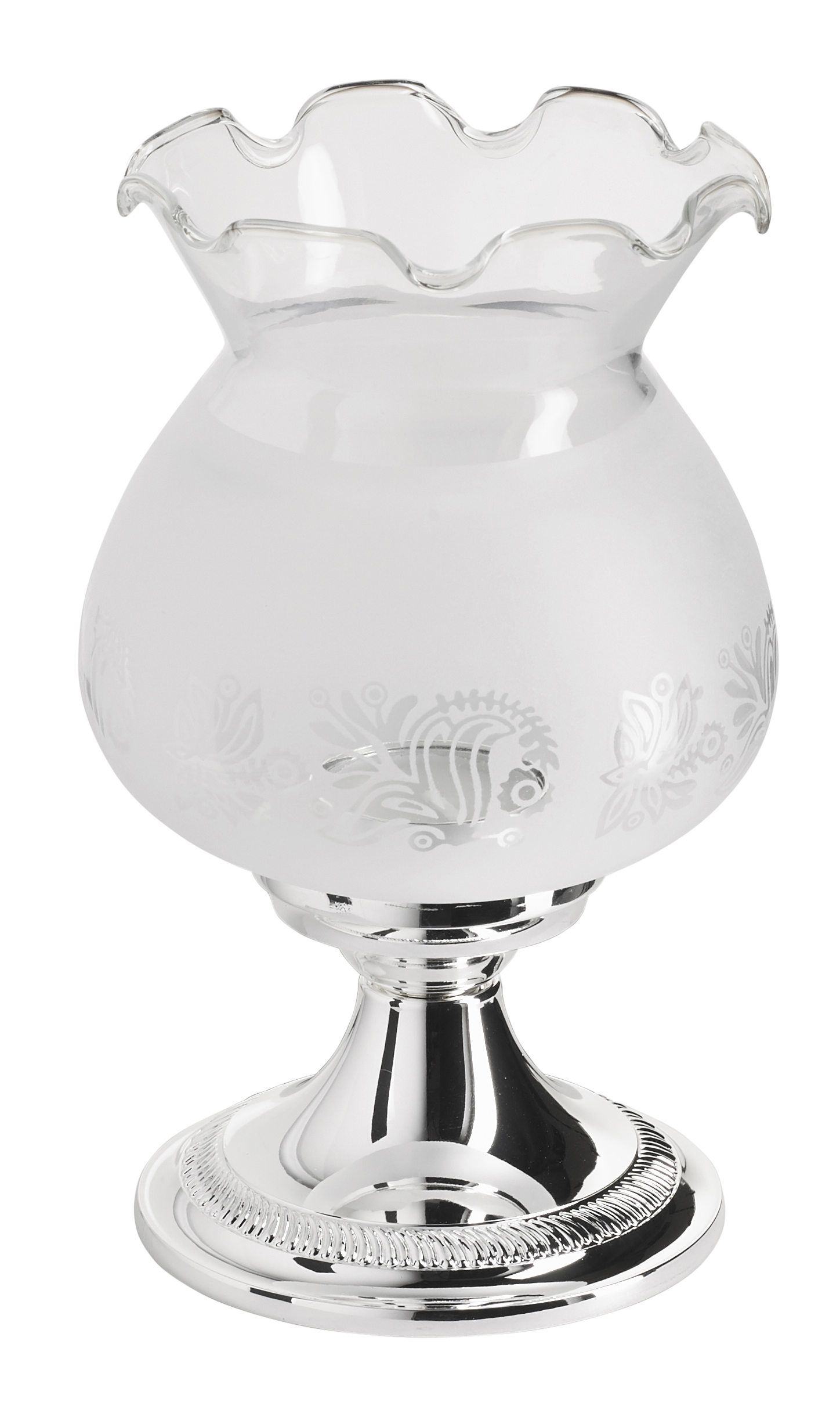 Silver Plated Single Candlelamp “Gadroon Design” Base with Decorative Glass Shade