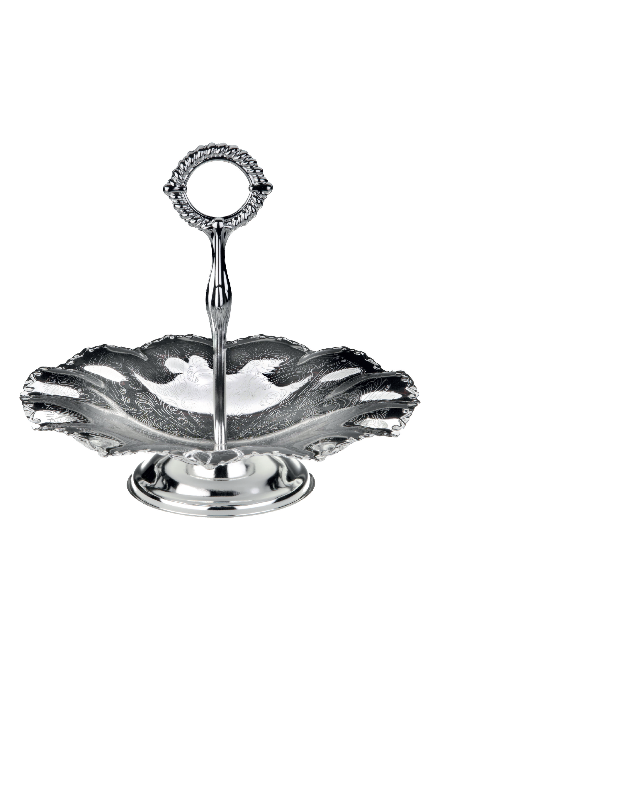 Silver Plated Wavy Edged Plate and Base with Ornate Central Diecast Handle.