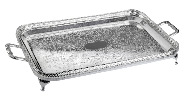 Silver Plated Small Oblong Gallery Tray with Handles & Legs