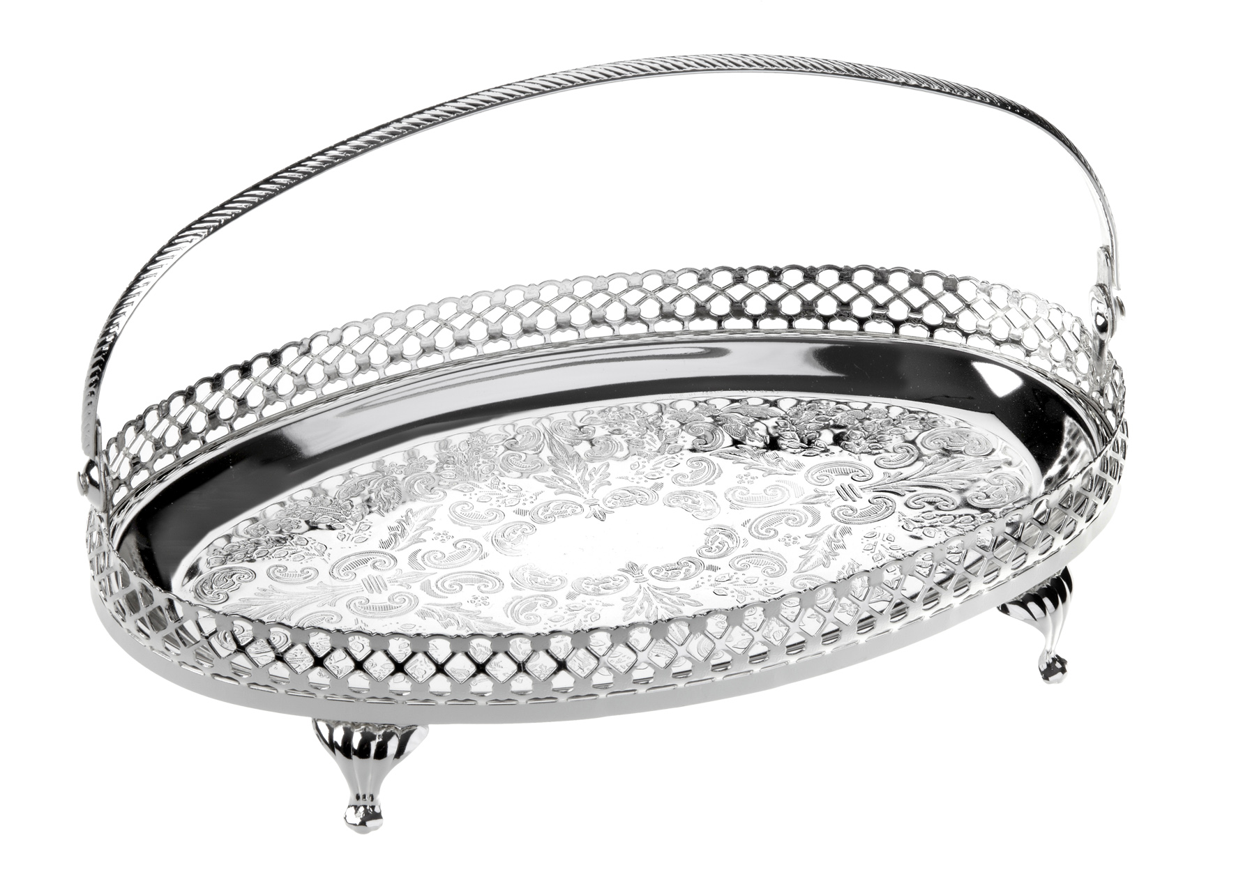Silver Plated Small Oval Gallery Tray with Legs and Swing Handle