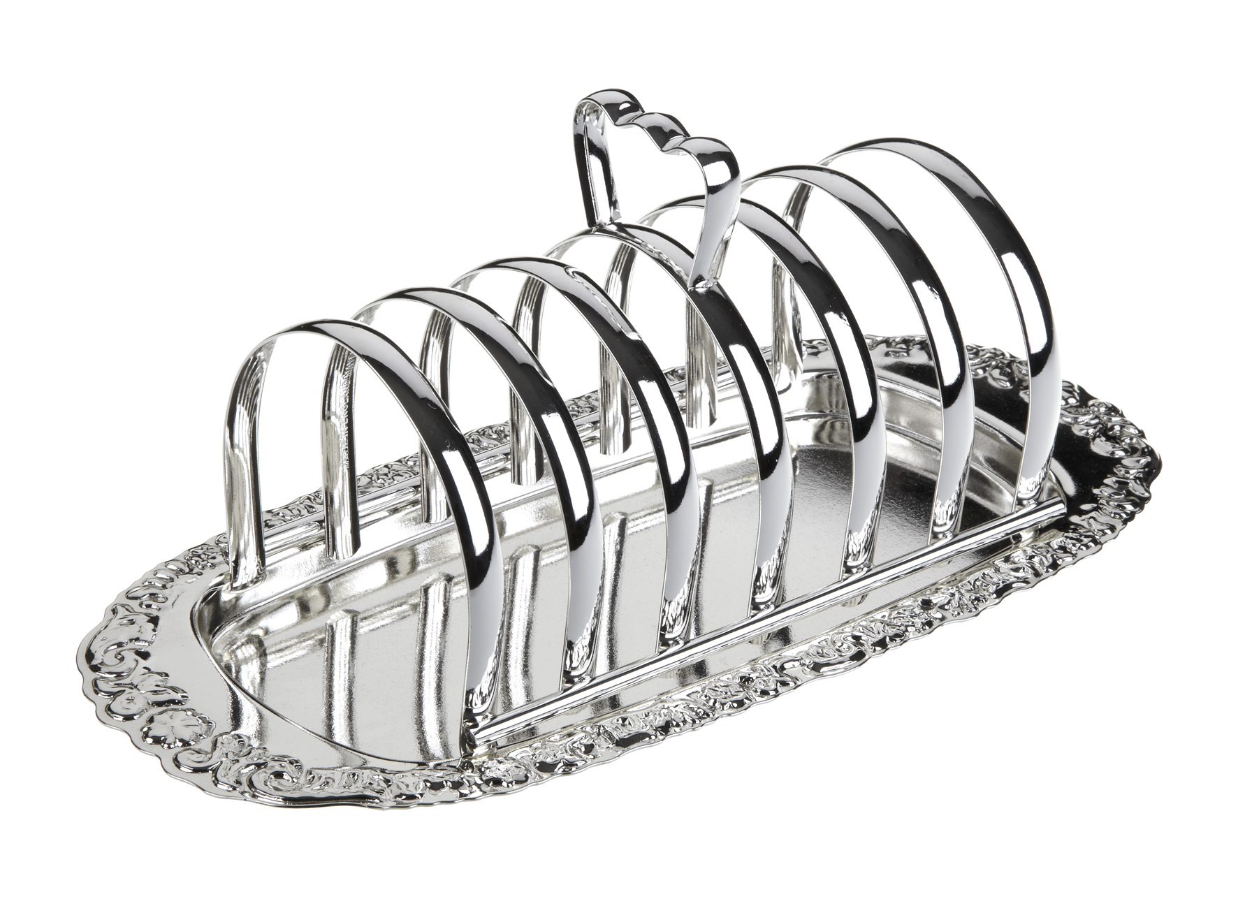 Silver Plated Toast Rack with Handle, incorporating a recessed Floral Edged Base.